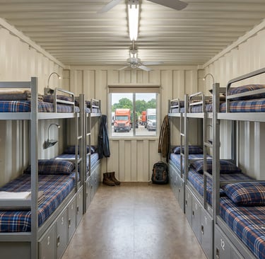 A modular dormitory helps companies convert unmanaged waiting into organized driver accommodation with toilets, showers and bed capacity near active truck operations.